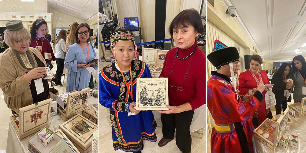 Кстати, мы впервые познакомили внимательную и заинтересованную публику с новинками этого года — коллекцией, посвященной Узбекистану и серией «ВДНХ. Фонтан Дружбы народов». Традиционно вызвали много вопросов и восторгов наборы «Татары России», «Чечня», «Сокровища народов Севера».
