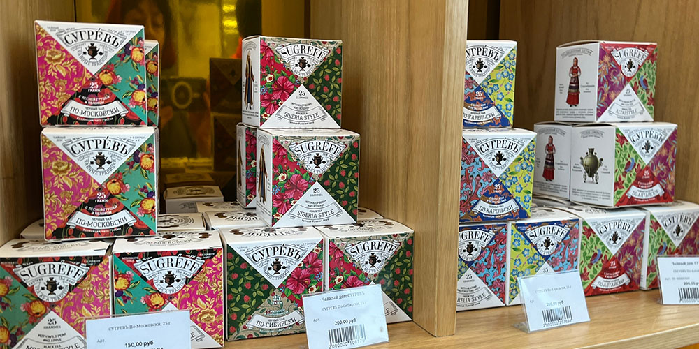 Хит продаж — подарочный набор чаев из семи купажей листового чая, характерных для разных регионов России и матрешки ручной работы с вареньем из малины. Рады, что шкатулка из массива берёзы с эксклюзивным чаем от Чайного дома Сугревъ активно путешествует по миру!