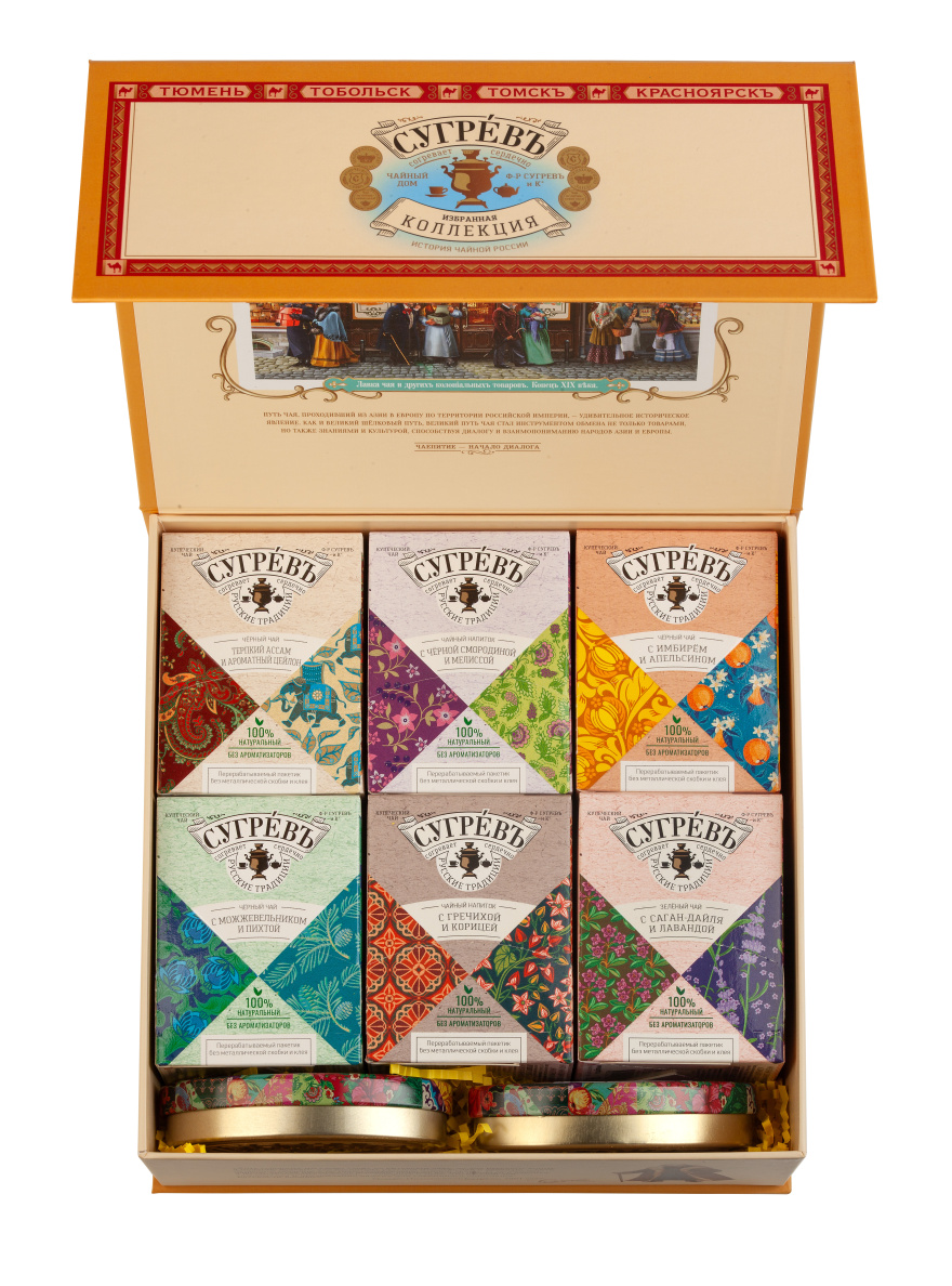 Набор представляет собой коллекцию из 6-и оригинальных купажей чая и чайных напитков в индивидуальных саше. В отличие от обычных пакетированных чаёв, наша продукция 100% натуральная. Яркие ароматы создаются благодаря естественному букету таких растений, как имбирь, апельсин, лаванда, пихта, можжевельник, чёрная смородина, мелисса и саган дайля.