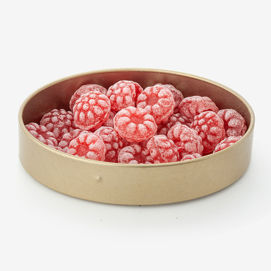 Карамель леденцовая со вкусом малины: сахар, патока, вода, регуляторы кислотности (лимонная кислота, молочная кислота), ароматизаторы идентичные натуральным, краситель: концентрат сладкого картофеля, редиса и яблока.