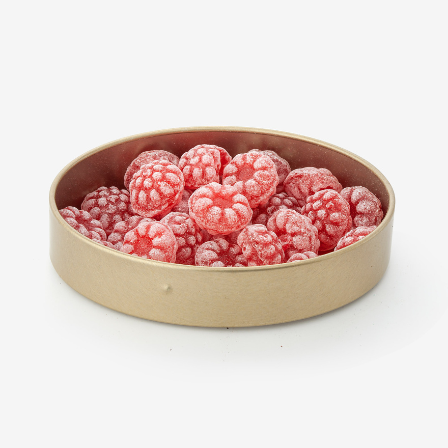 Карамель леденцовая со вкусом малины: сахар, патока, вода, регуляторы кислотности (лимонная кислота, молочная кислота), ароматизаторы идентичные натуральным, краситель: концентрат сладкого картофеля, редиса и яблока.