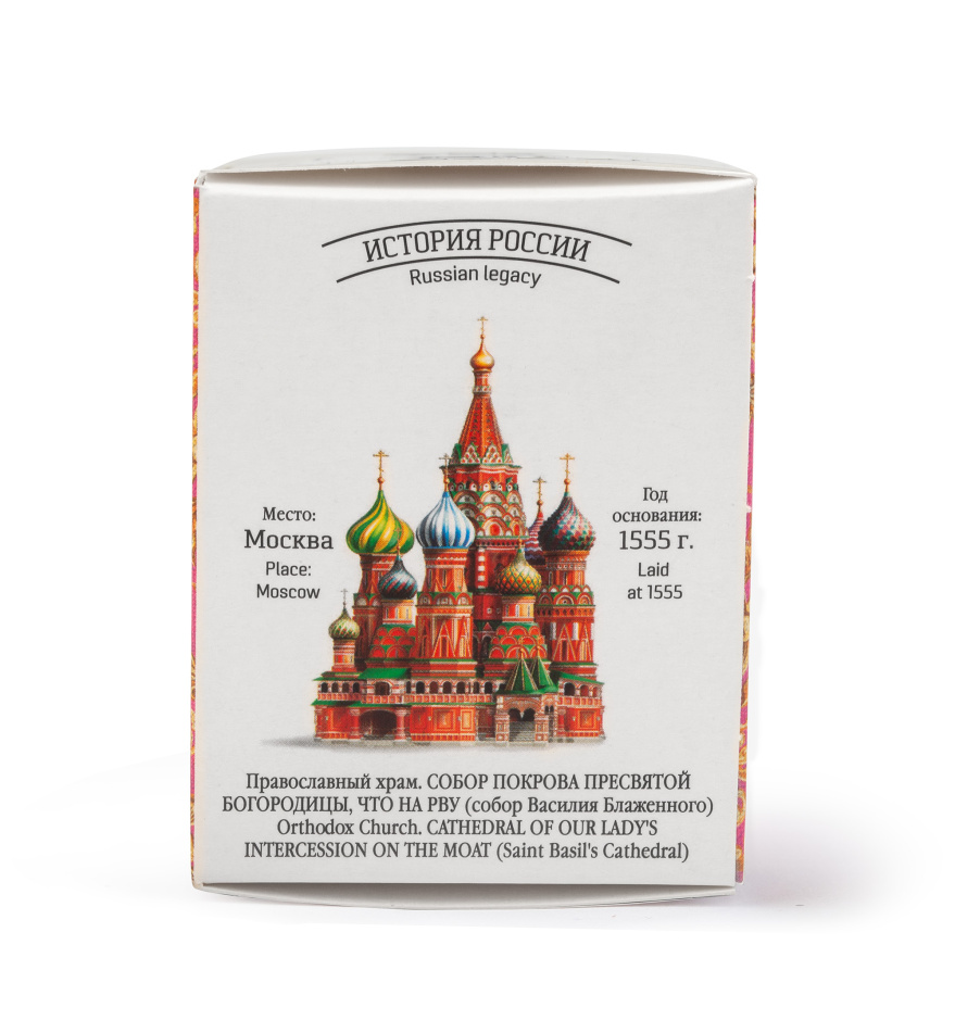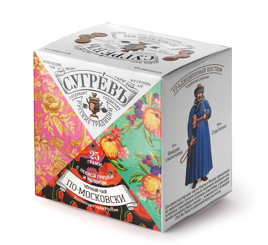 Чай «ПО-МОСКОВСКИ» сделан на основе купажа чёрного байхового чая с добавлением кусочков сублимированной малины и яблока.