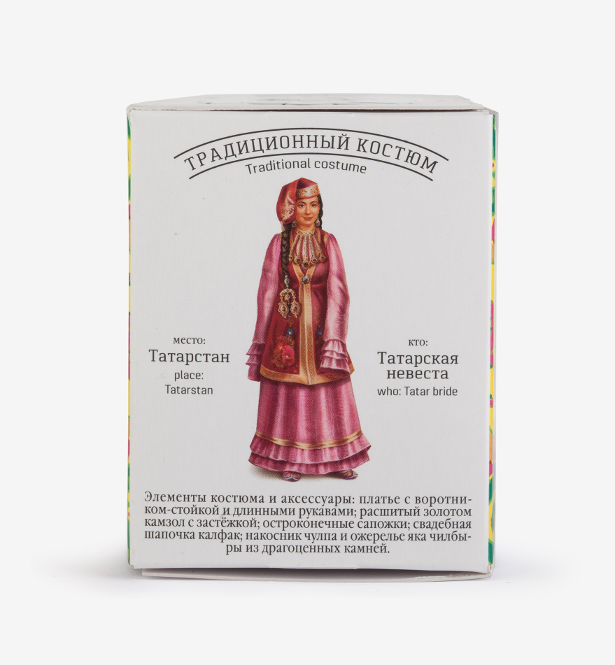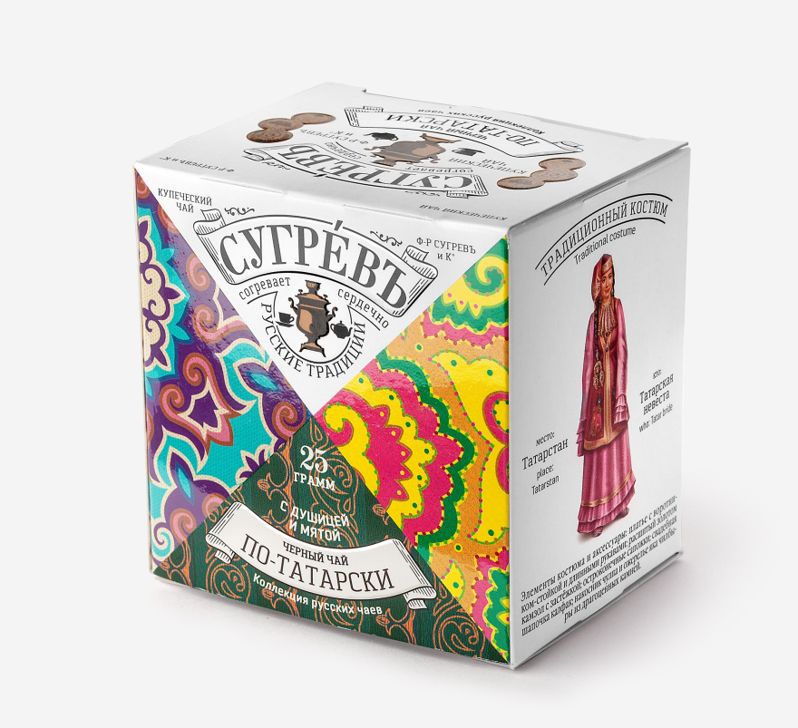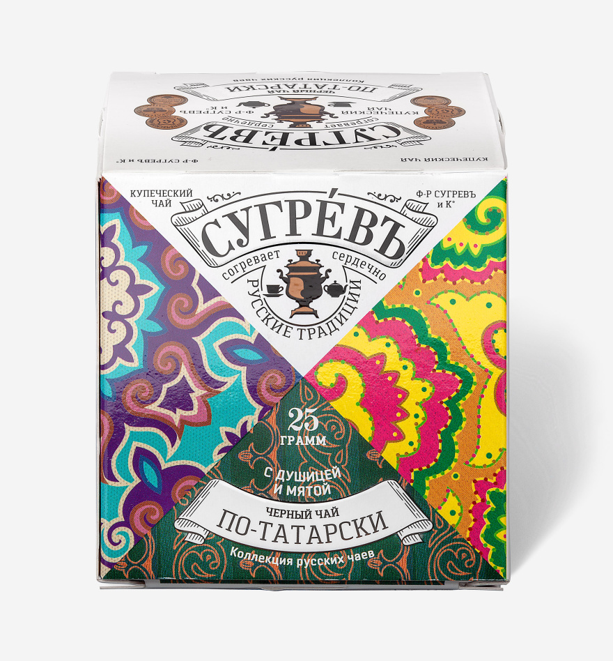 Чай «ПО-ТАТАРСКИ» сделан на основе купажа отборного цейлонского чая Pekoe c добавлением натуральных популярных трав Татарстана. Брусничный лист придаёт напитку лёгкую терпкость, а мята с душицей добавляют аромат и свежесть. При желании в этот чай можно добавить молоко, чтобы приблизиться к традициям татарского чаепития.