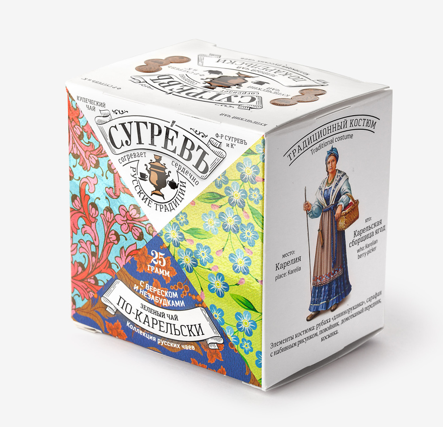 Чай «ПО-КАРЕЛЬСКИ» сделан на основе зелёного чая, вереска и незабудок с добавлением других трав и ягод Карелии. Чай лёгкий, приятный, отлично тонизирует. Он особенно нравится любителям традиционного зелёного чая, которые ищут оригинальный вкусовой профиль.