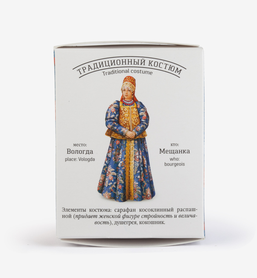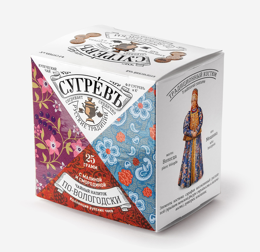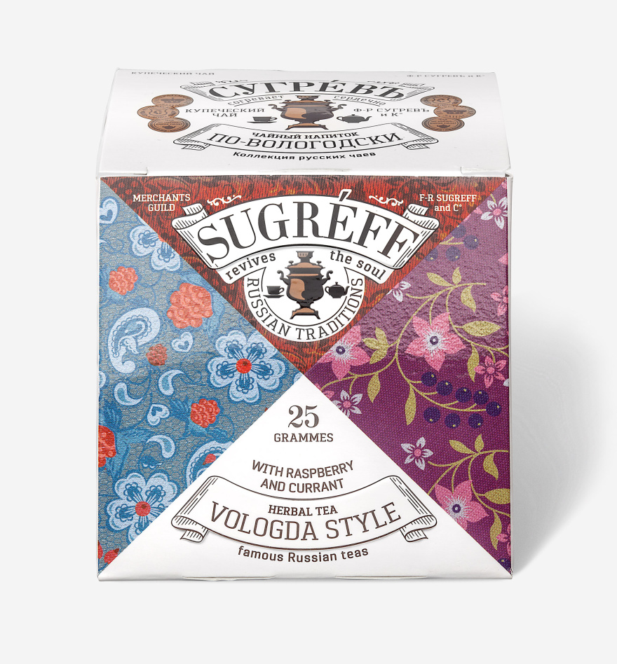 Чайный напиток «По-вологодски» сделан на основе купажа натуральных трав и фруктов. Это лёгкий приятный напиток с освежающей кислинкой, которую дают малина, мята и яблоко с небольшим добавлением гибискуса. Такой чай особенно приятно пить в тёплое время года или в душных помещениях зимой.