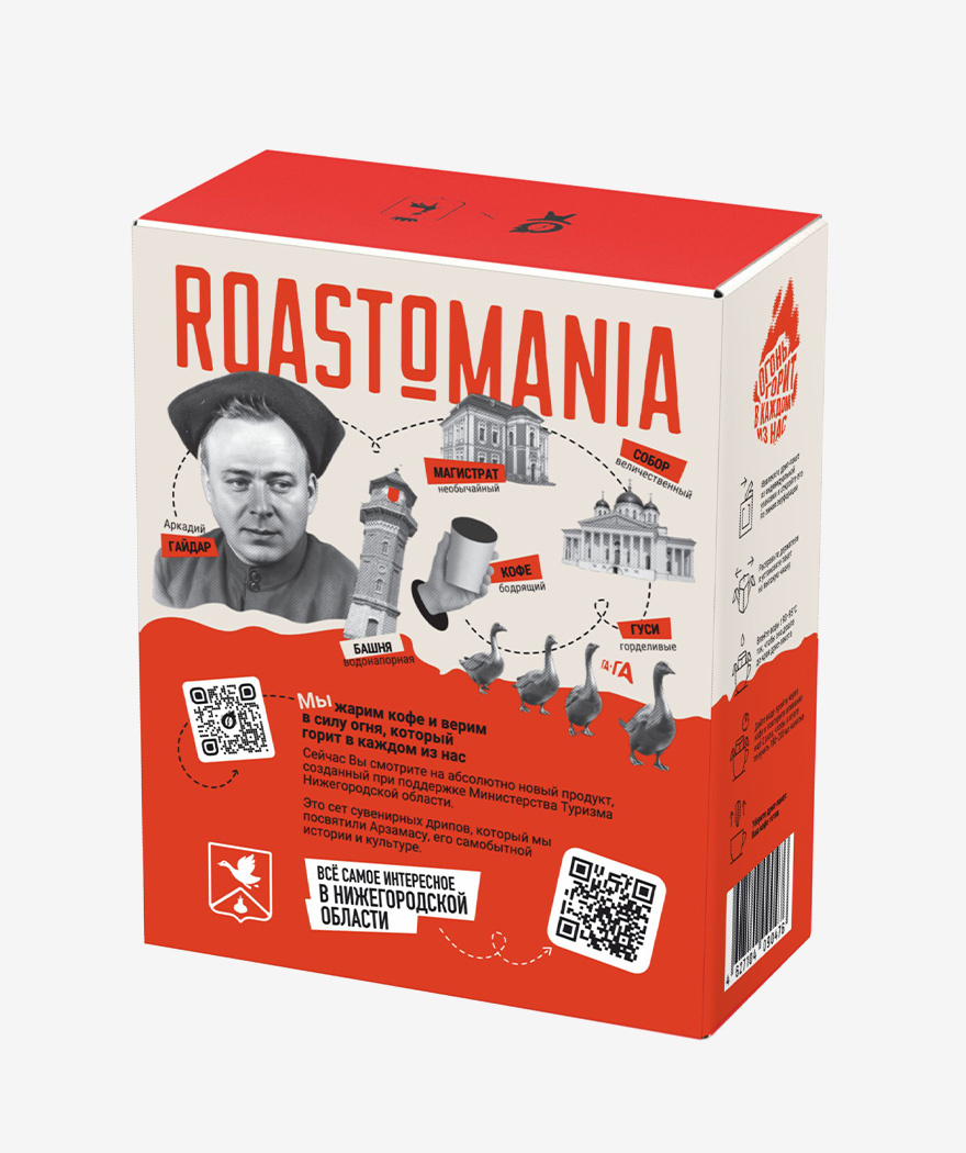 Каждый пакет заполняется азотом, уровень кислорода в нём не должен превышать 1%, тогда кофе сохранит всю свою свежесть, вкус и аромат не менее полугода. Кофе обжарен в Нижнем Новгороде, в цехе обжарки ROASTOMANIA, на ростере Loring (США), а упакован нашими партнёрами в Ижевске – именно там созданы одни из лучших в мире условия для фасовки: дрип-станция Fuso (Япония), кофемолка Ditting 1403 Industrial (Швейцария), азотная станция Oxymat N190 (Дания).