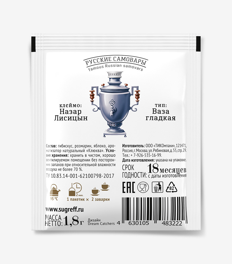 15 индивидуальных саше (перерабатываемый безопасный пакетик без металлической скобки)