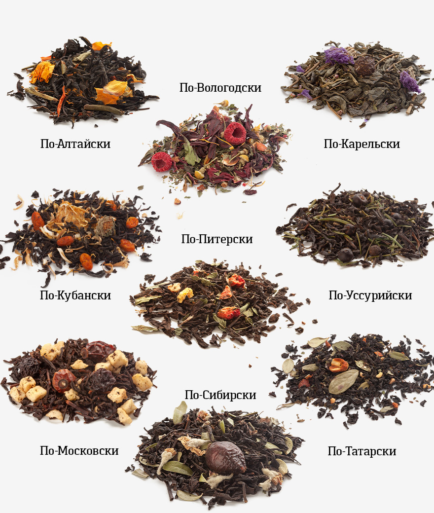 Чай по-Сибирски: Чай чёрный, плоды шиповника, цветы яблони, мята, толокнянка, натуральный ароматизатор.