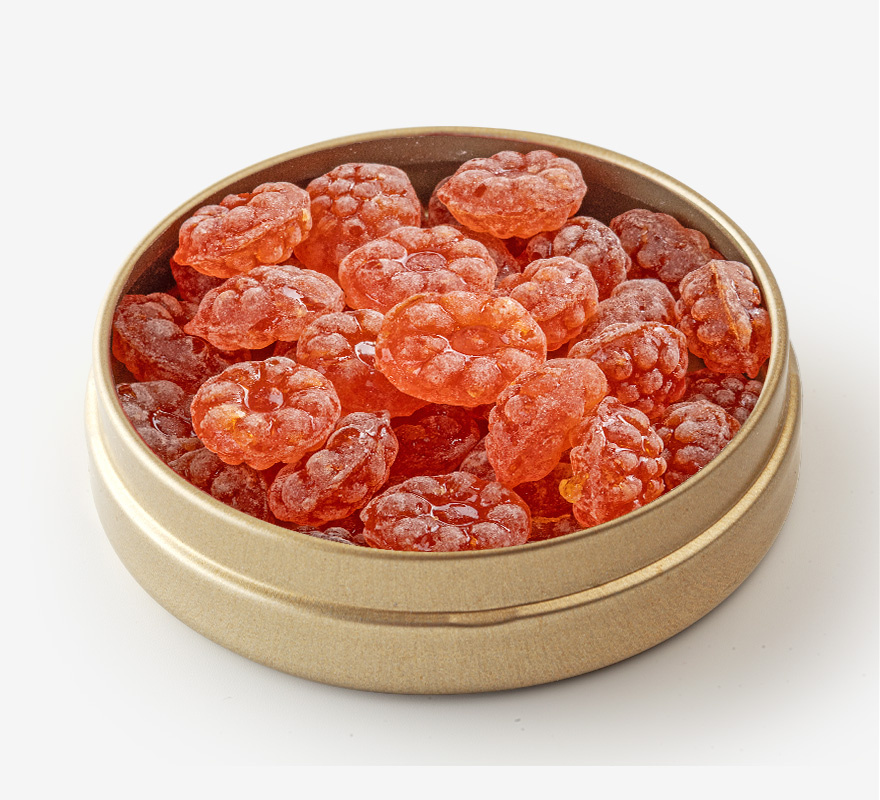 Необычная карамель в форме ягоды. Имеет натуральный и насыщенный вкус морошки.