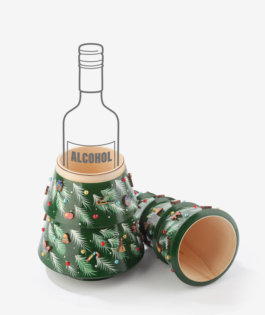 Уникальная ёлка ручной работы из массива липы с тайником, в котором может находится бутылка или другой дополнительный подарок.