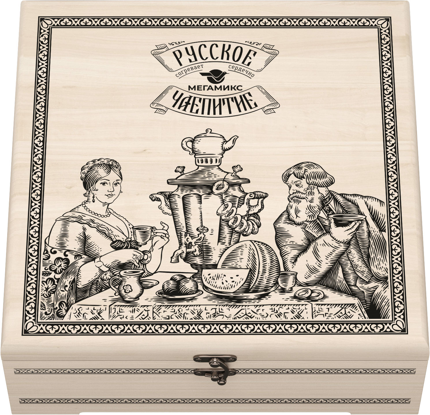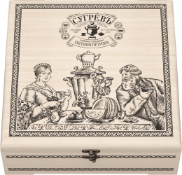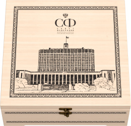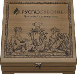 Тип вложения: тематический сувенир из России (матрешка, фарфоровые фигуры, изделия из бересты, шелковые платки и прочее), чайная посуда (чайный стакан, чайница), десертная группа из традиционных русских сладостей (мед, варенье, пастила, пряники, орехи, ленедцы, сухофрукты и прочее), предметы декора (свечи, текстиль)) с ограничением по размеру не более В70*Ш70*Г55 мм для размещения в качестве центрального элемента и не более В180*Ш70*Г55 мм для вертикального/горизонтального размещения. Предметы могут быть размещены как в декоративном мешочке, так и в доступном виде с подложкой из мишуры, либо для них может быть изготовлен ложемент. Тираж: не менее 20 штук.