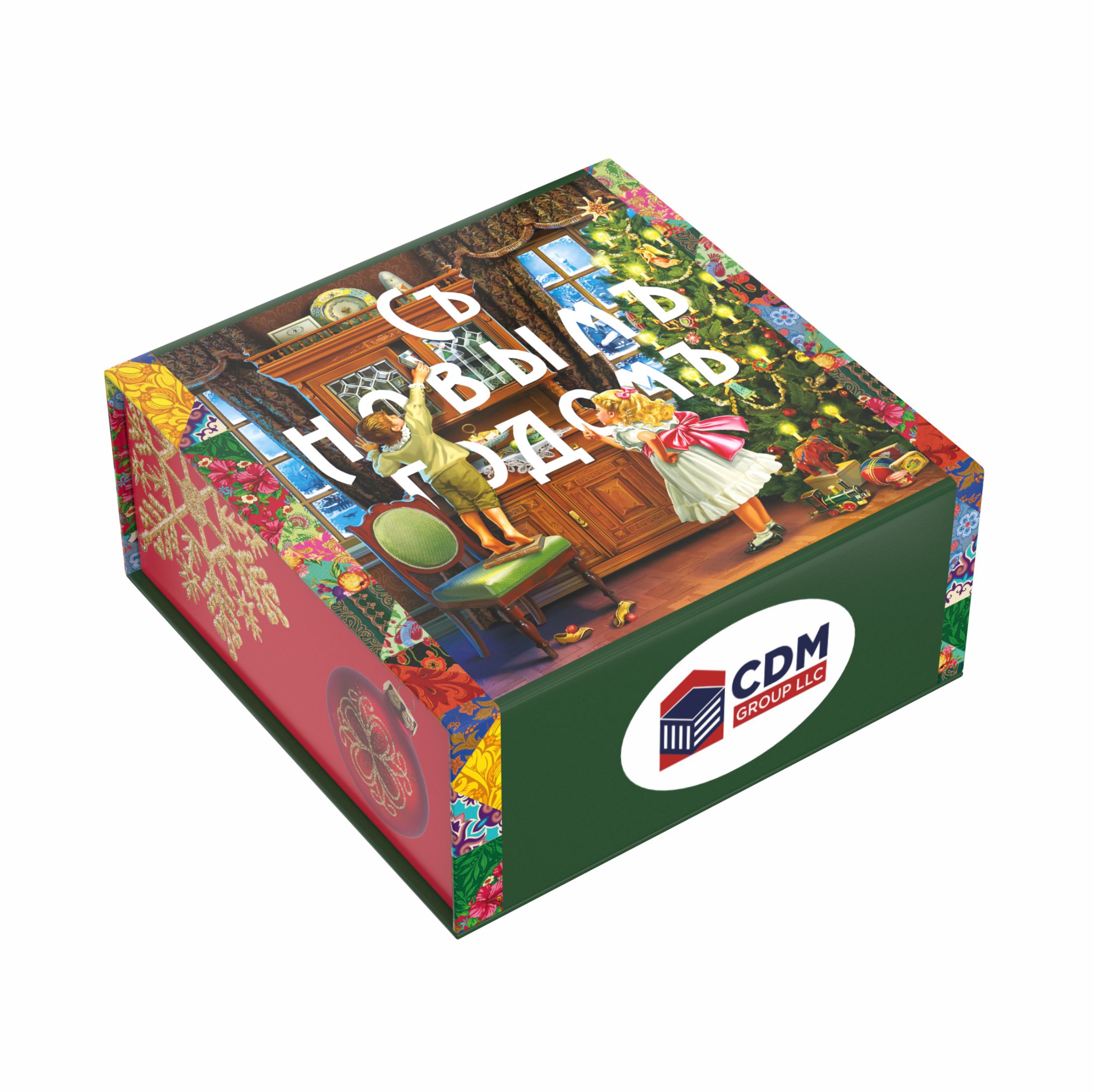 Тип кастомизации: интеграция логотипа в дизайн упаковки серийного изделия / полностью авторский дизайн упаковки на основе разработанной концепции подарка для клиента. Материал изготовления упаковки: картон. Печать: полноцветная офсетная/цифровая. Вид отделки: выборочный УФ-лак, конгрев. Тираж: офсетная не менее 500 штук / цифровая не менее 50 штук. Срок изготовления: от 21 рабочего дня (с даты согласования макета в печать).