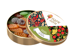 Тип кастомизации 2: полноценное изделие полностью в авторском дизайне ж/б банки на основе разработанной концепции подарка для клиента и имеющихся форм серийных изделий. Материал изготовления ж/б банки: жесть. Печать: полноцветная. Вид отделки: конгрев. Тираж: не менее 1000 штук. Срок изготовления: от 80 рабочих дней (с даты согласования макета в печать).